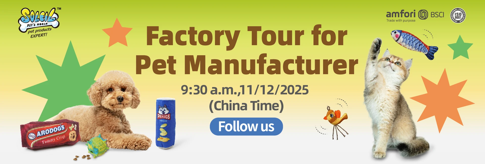 Established in 1991, with a commitment to quality and innovation, Soleil Pet's World is recognized as a leading manufacturer and global distributor for High Quality pet products. Soleil has passed various high standard factory audit, like ISO, BSCI, Sedex.